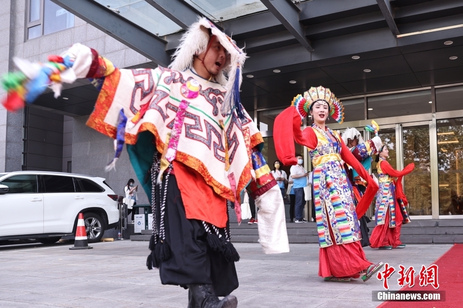 5月23日,“2023·中國(guó)西藏發(fā)展論壇”在北京舉行。會(huì)場(chǎng)外,活潑獨(dú)特的藏式迎賓舞蹈、展示西藏人文自然風(fēng)貌的圖片,已在論壇開幕前預(yù)熱起探討西藏新發(fā)展的氛圍。圖為藏式迎賓舞蹈。