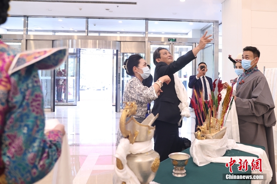 5月23日,“2023·中國(guó)西藏發(fā)展論壇”在北京舉行。會(huì)場(chǎng)外,活潑獨(dú)特的藏式迎賓舞蹈、展示西藏人文自然風(fēng)貌的圖片,已在論壇開幕前預(yù)熱起探討西藏新發(fā)展的氛圍。圖為著名紀(jì)錄片導(dǎo)演、全球化智庫(kù)(CCG)高級(jí)研究員龍安志(Lawrence Brahm)接受哈達(dá)。