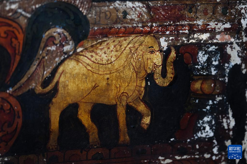 這是5月26日拍攝的皮央石窟壁畫(huà)中的大象像。新華社記者 費(fèi)茂華 攝