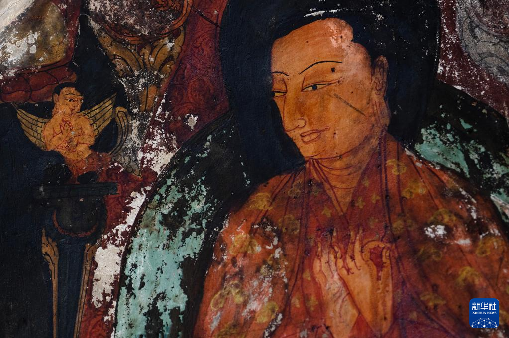 這是5月26日拍攝的皮央石窟壁畫(huà)中的人物造型。新華社記者 費(fèi)茂華 攝