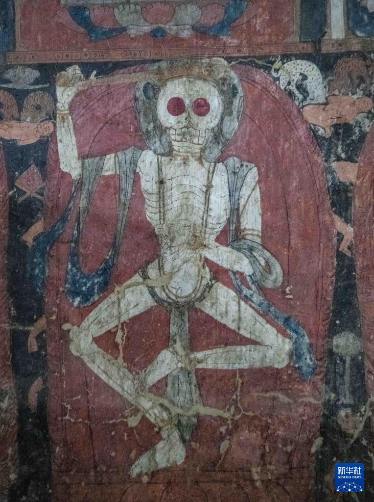 這是5月26日拍攝的皮央石窟壁畫(huà)中的骷髏造型。新華社記者 晉美多吉 攝