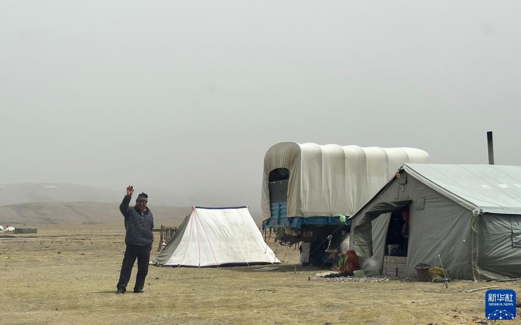 “國道之行 從雪山奔向大?!眻蟮澜M沿著219國道繼續(xù)向南,進入仲巴縣境內(nèi),隨后,記者離開國道,拐入一條由碎石鋪成的簡易道路。繼續(xù)行駛近百公里后,草原上出現(xiàn)了數(shù)頂帳篷——這是一個牧民的放牧點。