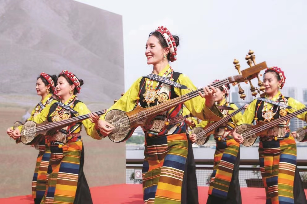 5日,由上海市援藏干部人才聯(lián)絡(luò)組拉孜小組、西藏日喀則市拉孜縣文化和旅游局主辦的“遇見(jiàn)|雅江情濱江意·滬藏文化交流”演出,走進(jìn)上海楊浦文化新地標(biāo)“YOUNG劇場(chǎng)”,悠揚(yáng)的扎念琴聲、時(shí)快時(shí)慢的“踢踏”舞聲、傳統(tǒng)藏族曲調(diào)和現(xiàn)場(chǎng)觀(guān)眾的歡笑聲、鼓掌聲,為初夏的繽紛申城再添一抹亮色。