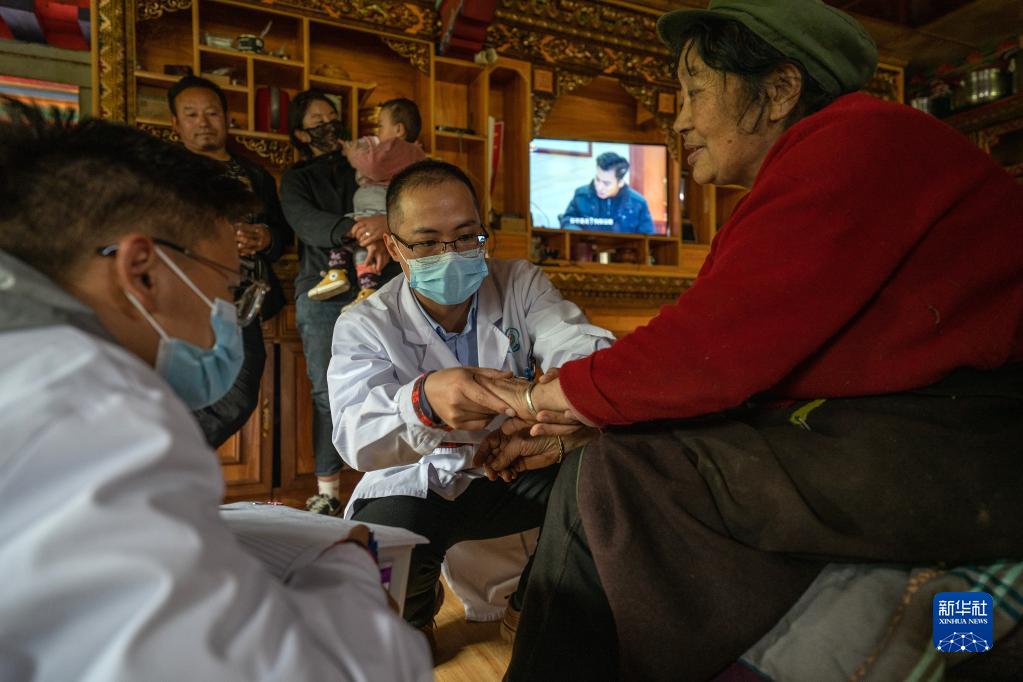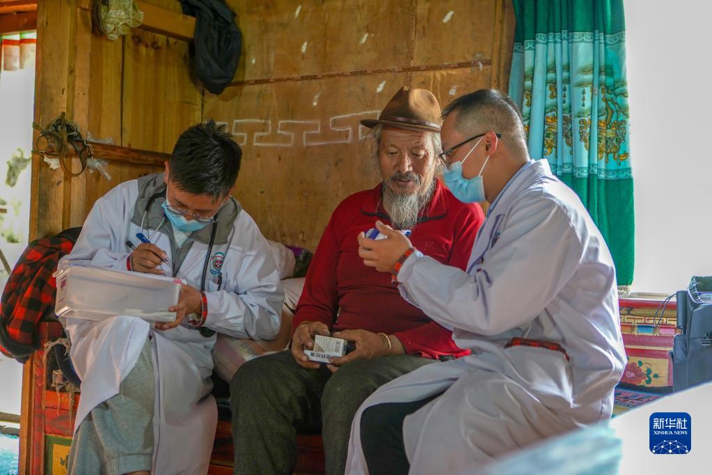 6月12日,王振疆(右)為吞不絨村89歲的村民娘姑進行檢查。新華社記者 費茂華 攝