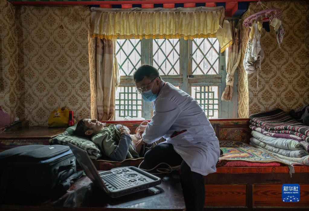 6月12日,王彤旭在吞不絨村為珠杰診治。新華社記者 費茂華 攝