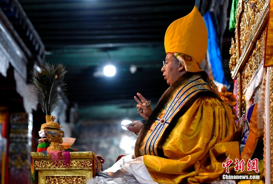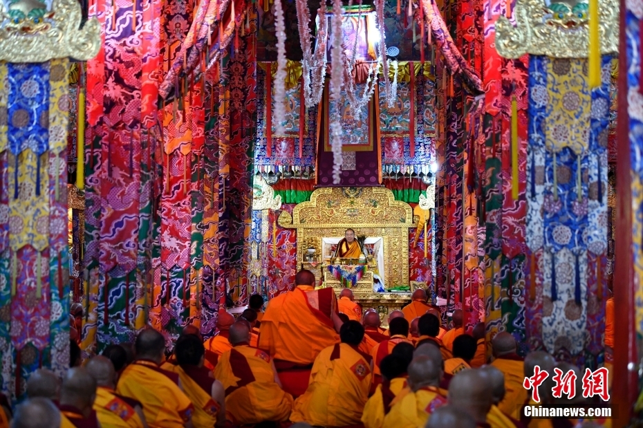 圖為6月12日,班禪在西藏昌都強巴林寺禮佛講經。