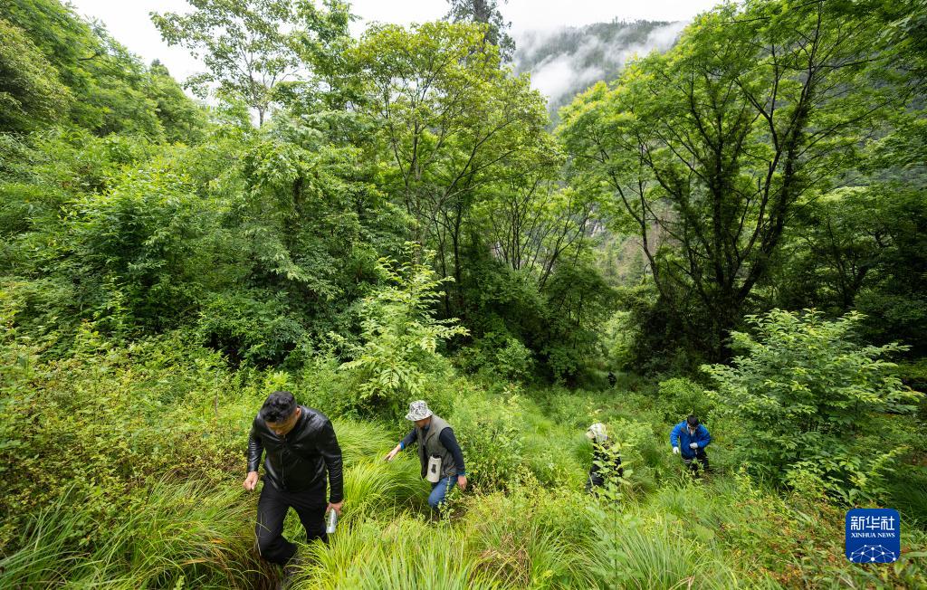 6月15日,波密縣林草局工作人員西繞(左)帶領大家穿過原始森林尋找亞洲第一高樹。新華社記者 費茂華 攝