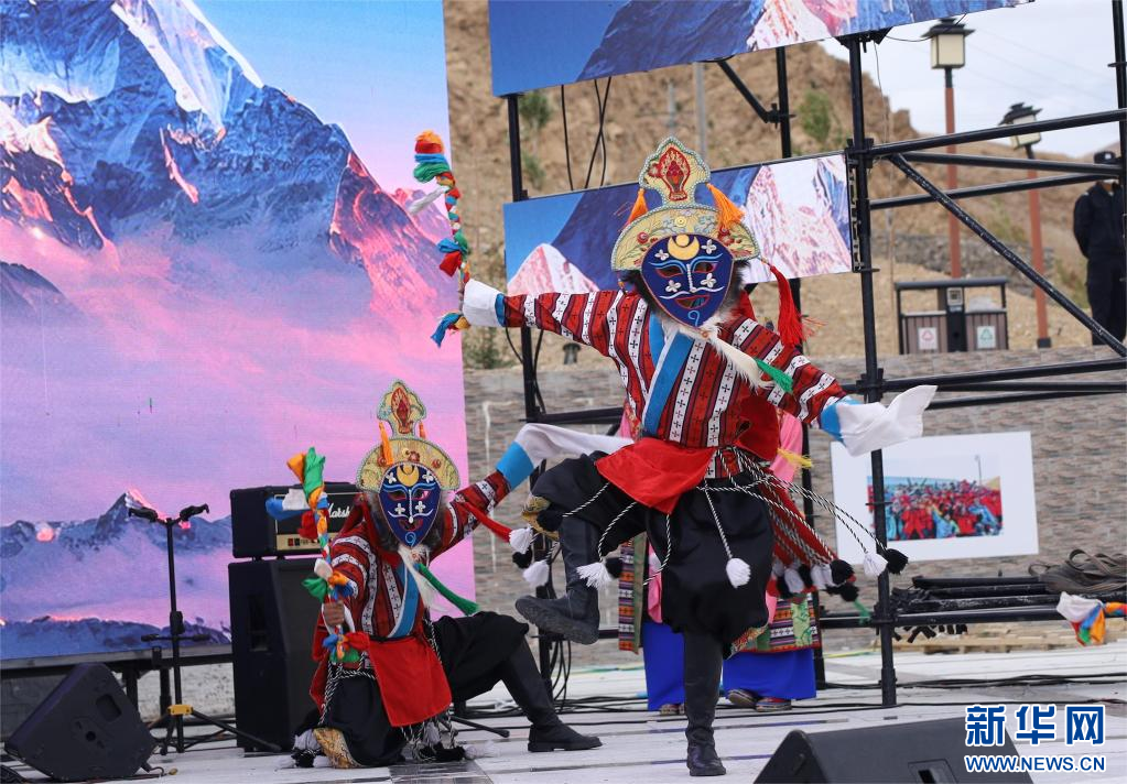 7月23日,在西藏定日2023珠峰音樂美食節(jié)現(xiàn)場(chǎng),民間藝術(shù)團(tuán)表演國(guó)家級(jí)非物質(zhì)文化遺產(chǎn)定日洛諧。新華網(wǎng)發(fā) 李騰 攝