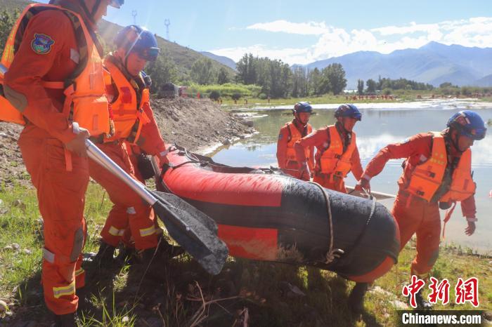 圖為演練現(xiàn)場進(jìn)行舟艇救援。西藏自治區(qū)森林消防總隊(duì)拉薩市大隊(duì) 供圖