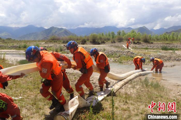 圖為進(jìn)行排澇演練。西藏自治區(qū)森林消防總隊(duì)拉薩市大隊(duì) 供圖