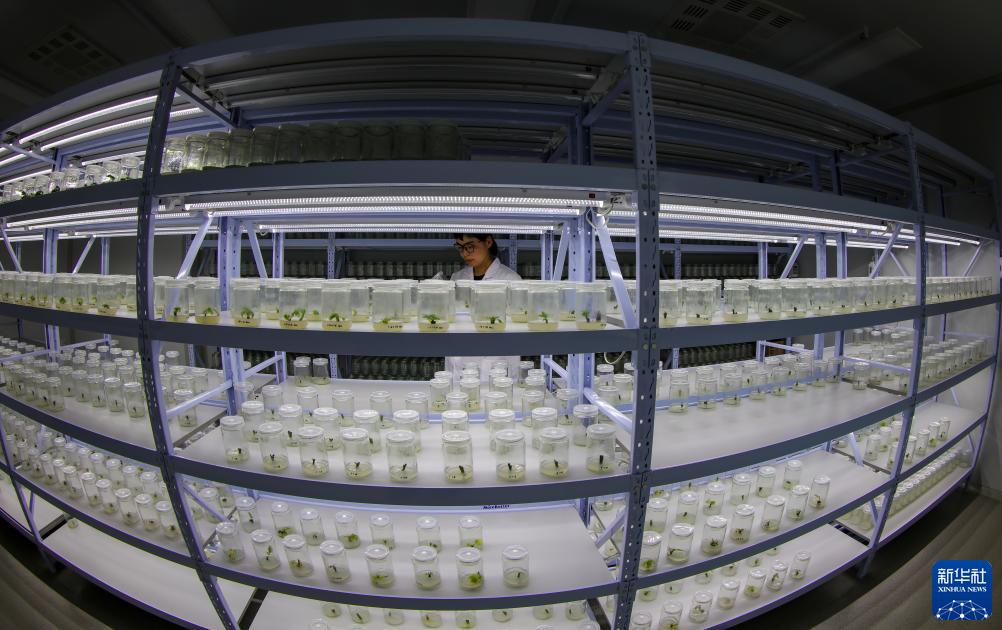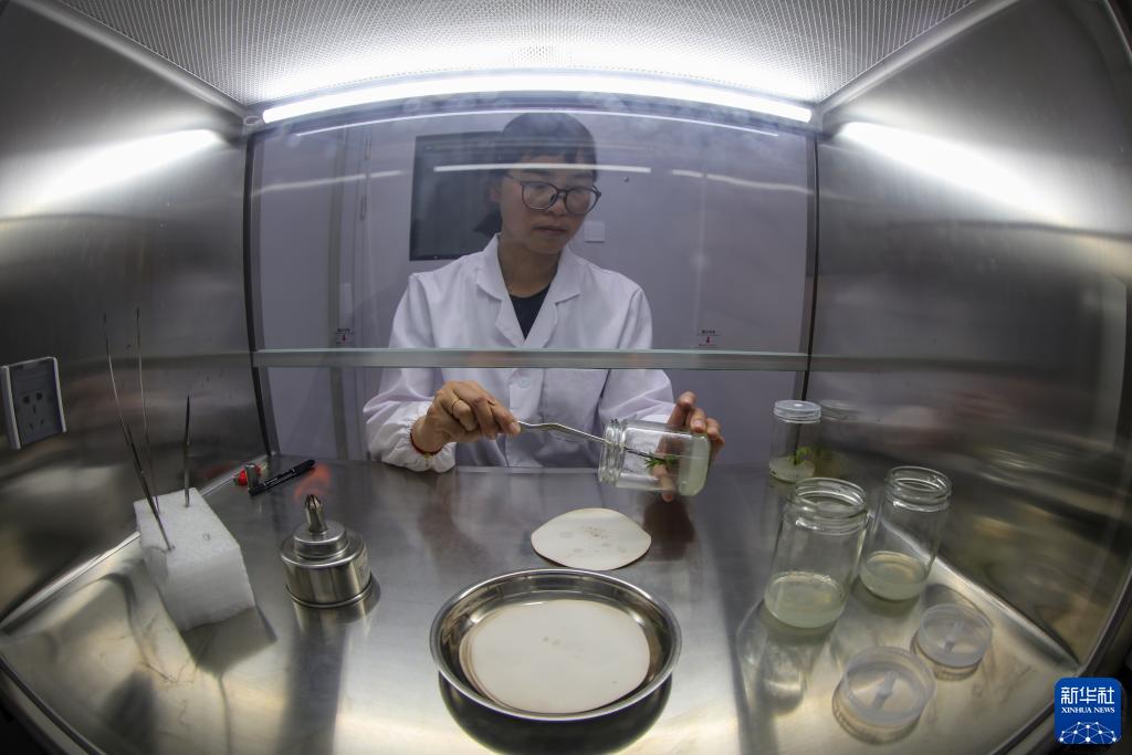 劉利平博士在高原核桃研究所用核桃組織培養(yǎng)標(biāo)本做實(shí)驗(yàn)(7月27日攝)。新華社記者 姜帆 攝
