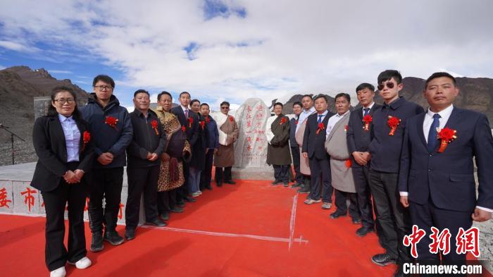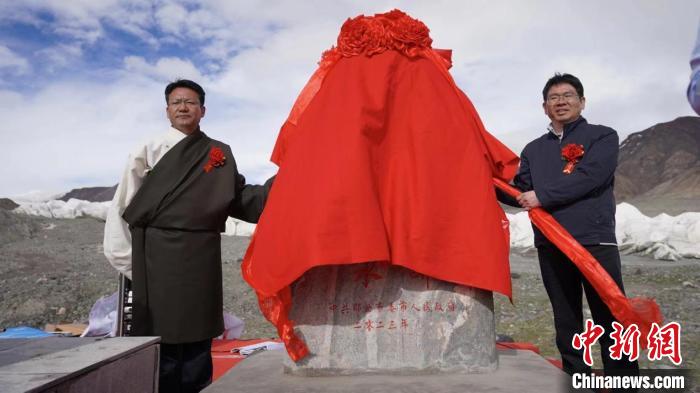 圖為那曲市委副書記、市長(zhǎng)旦巴(圖左)和水利部水資源管理中心副處長(zhǎng)張遠(yuǎn)東一同為“長(zhǎng)江第一滴水”揭碑。拉巴卓瑪攝