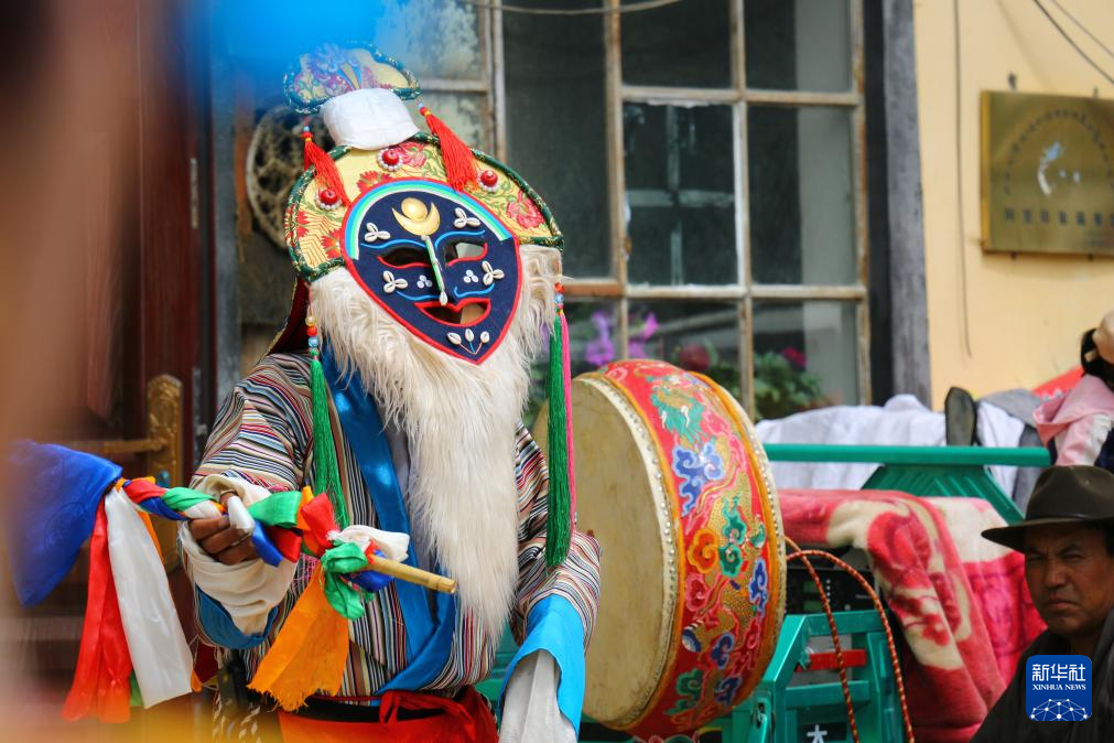 科迦藏戲團團長達瓦洛珠正在表演藏戲(8月9日攝)。新華社記者 聶毅 攝