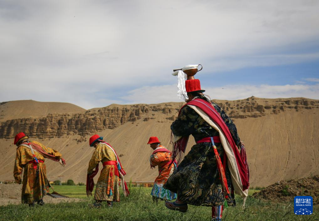 西德村“果爾孜”舞非遺傳承人旦成益西正在表演(8月10日攝)。新華社記者 聶毅 攝