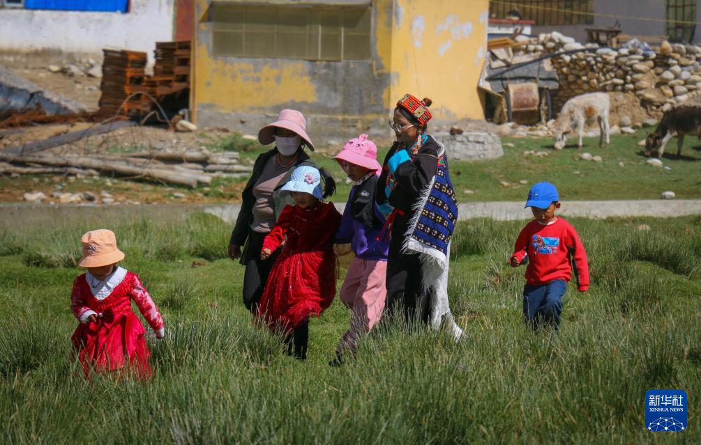 仁貢村村民正在前往表演現(xiàn)場(8月11日攝)。新華社記者 聶毅 攝
