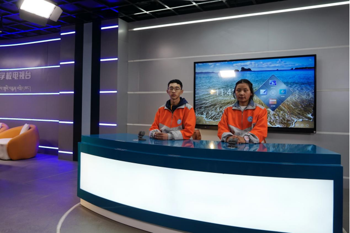 圖為學(xué)校電視臺(tái)擔(dān)任播音主持人的卡索旺堆(左)和索日吉(右)