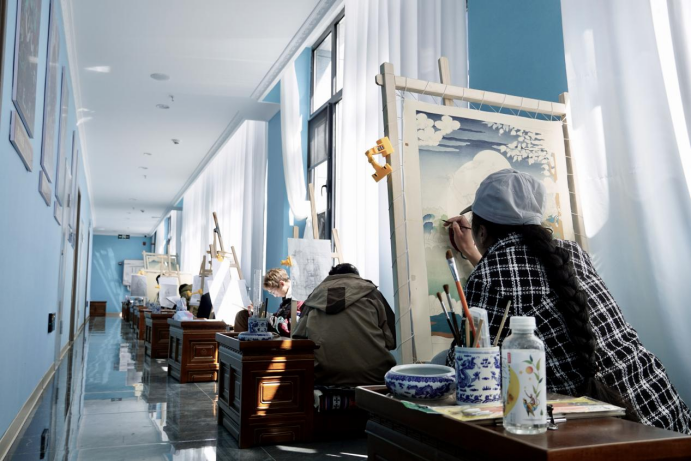圖為綜合實(shí)訓(xùn)樓內(nèi)唐卡學(xué)習(xí)場(chǎng)所