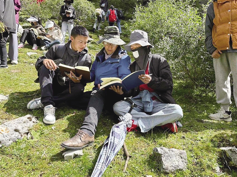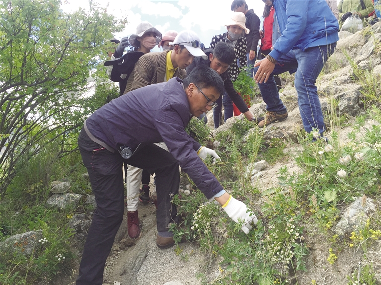 洛桑尼瑪帶領(lǐng)學生上山采藥識藥。圖由洛桑尼瑪提供