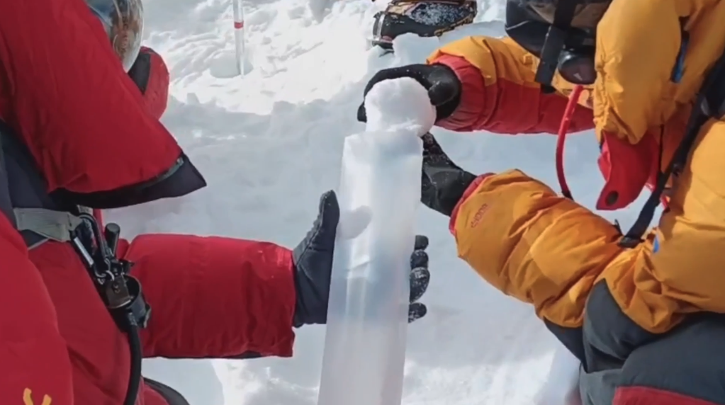 我國首次獲取卓奧友峰峰頂雪冰樣品