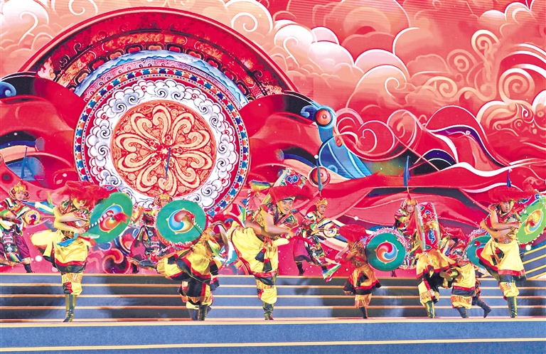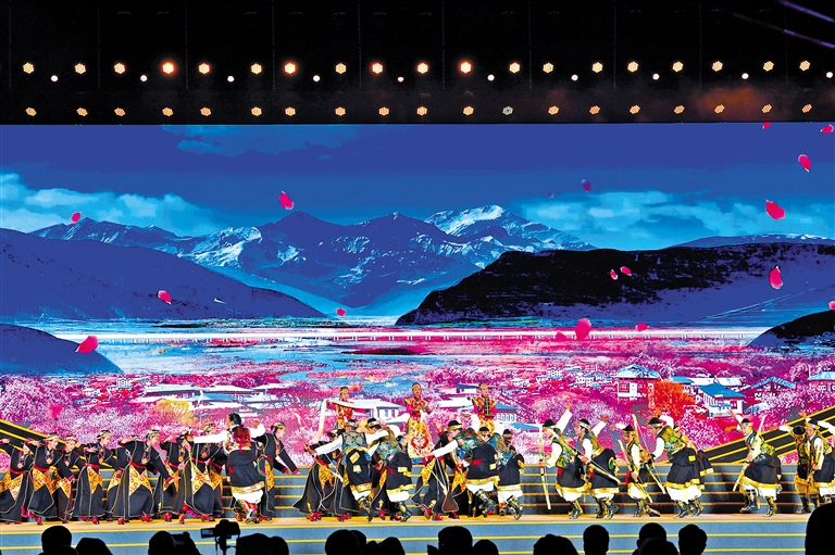 西藏自治區(qū)歌舞團(tuán)、林芝市民族藝術(shù)團(tuán)表演的開場歌舞《扎西德勒》。記者 洛桑 攝