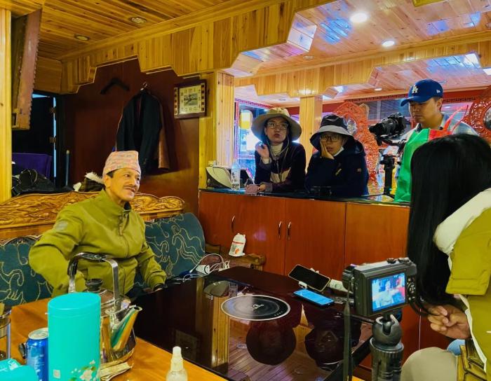 圖為庫瑪爾接受“遇見西藏 扎西德勒”網(wǎng)絡國際傳播活動記者團專訪。(主辦方供圖)