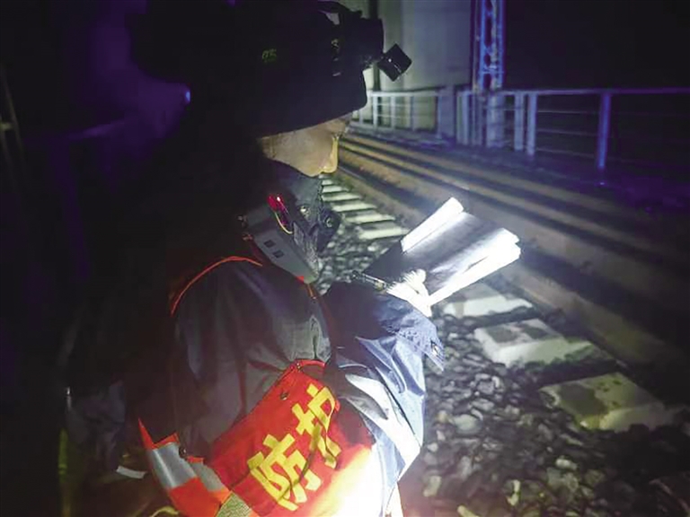 次日2時(shí)40分,經(jīng)過長達(dá)4個(gè)小時(shí)的鏖戰(zhàn),“天窗”作業(yè)結(jié)束,3名作業(yè)人員有序撤出防護(hù)柵欄。次仁央宗像往常一樣,將手電筒的亮度調(diào)到最大,一一檢查路肩等容易忽視的角落。確認(rèn)沒有工具材料遺落,她才鎖好柵欄門,返回工區(qū)。