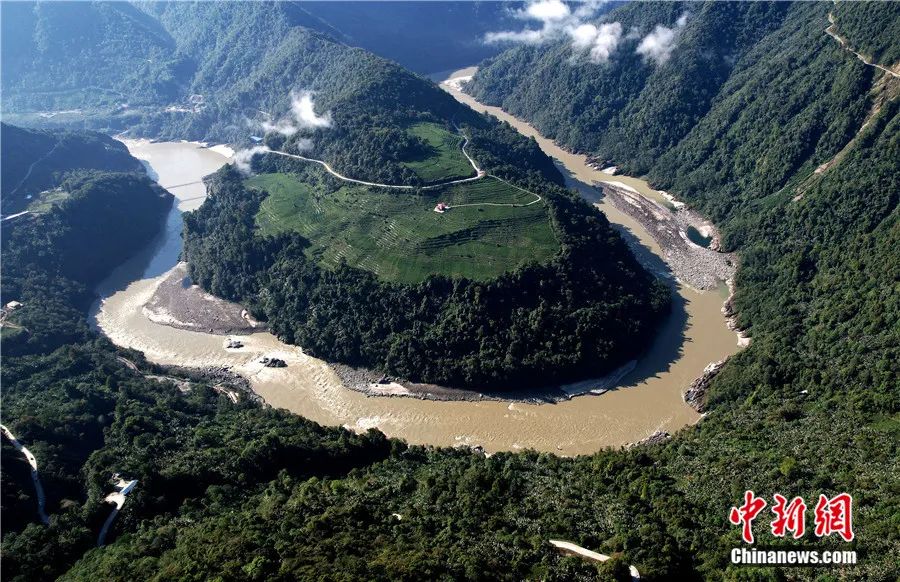 西藏林芝市墨脫縣雅魯藏布江果果塘大拐彎,景色雄奇壯觀。(無人機(jī)照片)李林 攝
