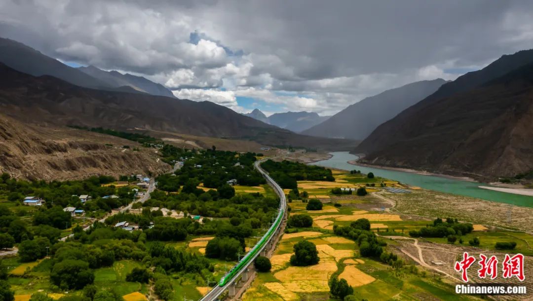 川藏鐵路拉林段高原復(fù)興號通過西藏林芝朗縣堆巴磄。魏方合 攝
