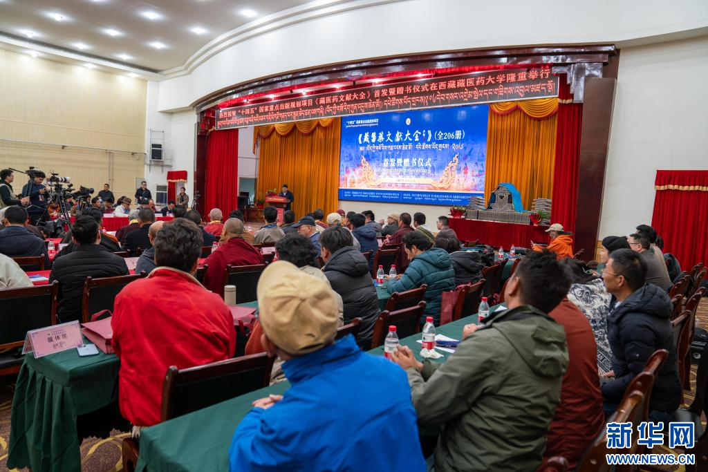 11月16日,《藏醫(yī)藥文獻(xiàn)大全》首發(fā)暨贈(zèng)書儀式現(xiàn)場。新華社記者 旦增尼瑪曲珠 攝