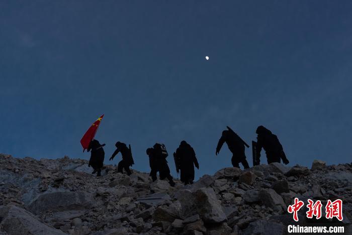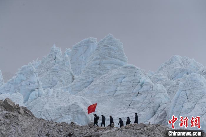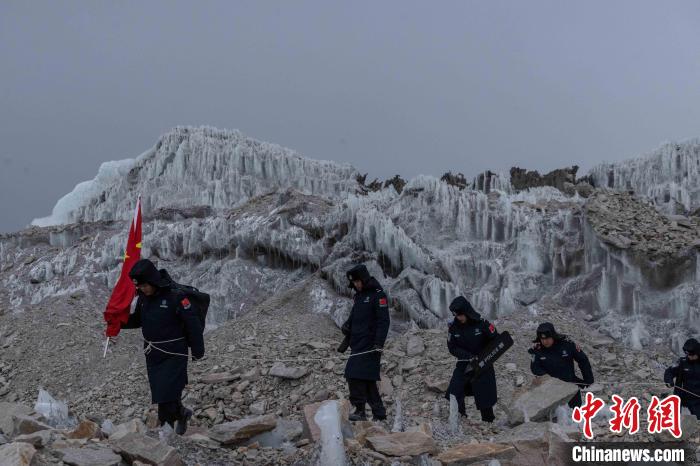 圖為普瑪江塘邊境派出所在海拔5600米的崗布冰川開(kāi)展邊境巡邏。郭遠(yuǎn)敬 攝