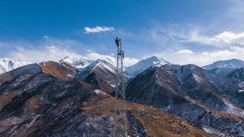 圖為11月30日索縣榮布至丁青縣巴達(dá)35千伏線路工程施工人員正在開展塔上作業(yè)。(趙清鵬 攝)