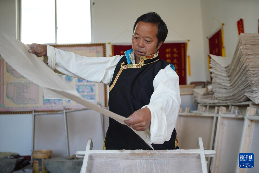 48歲的格桑旦增是“雪拉藏紙制作技藝”傳承人,也是西藏自治區(qū)拉薩市尼木縣雪拉藏紙農(nóng)牧民專業(yè)合作社負責人。他世代居住的尼木縣地處高原溫帶半干旱季風氣候區(qū),平均每天日照8.3小時。得天獨厚的自然條件使其自古以來便是影響較大的藏紙產(chǎn)區(qū)之一。