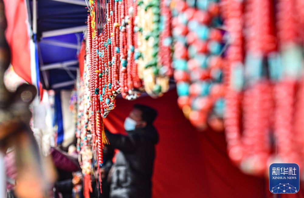 12月13日在西藏日喀則康馬縣冬季物資交流會上拍攝的藏式首飾。新華社記者 晉美多吉 格桑朗杰 攝影報道