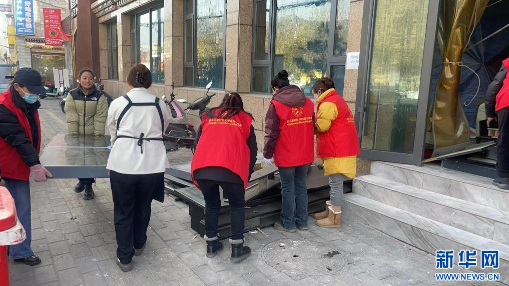 在西藏拉薩市功德林街道幸福社區(qū),志愿者正在協(xié)助商戶(hù)處理建筑垃圾(12月3日攝)。新華社發(fā)(娜拉 攝)