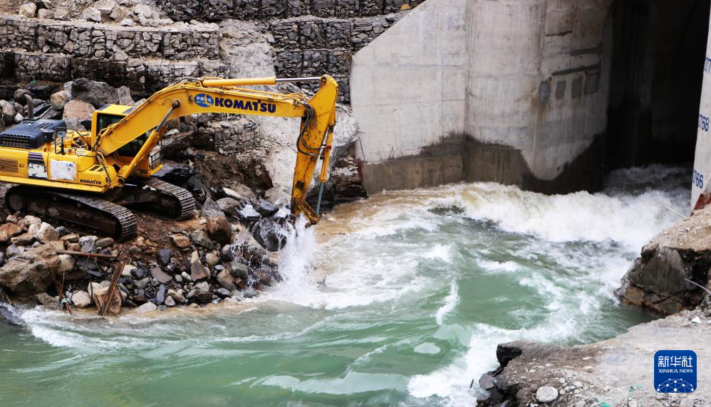 1月3日,一臺挖掘機在大唐扎拉水電站項目導(dǎo)流洞入口處施工。新華社記者 劉文博 攝