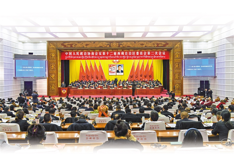 自治區(qū)政協(xié)十二屆二次會(huì)議現(xiàn)場(chǎng)。記者 丹增群培 攝