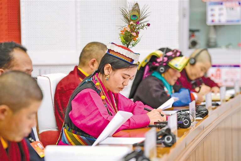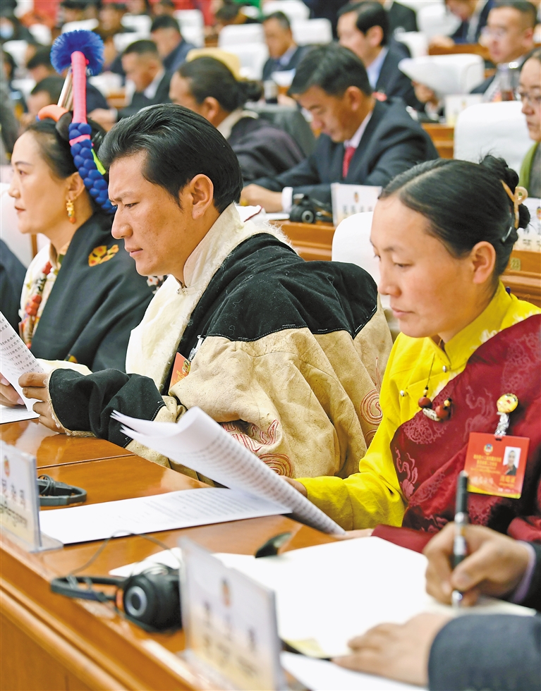 委員們認(rèn)真聆聽政協(xié)常委會(huì)工作報(bào)告。 記者 洛桑 攝