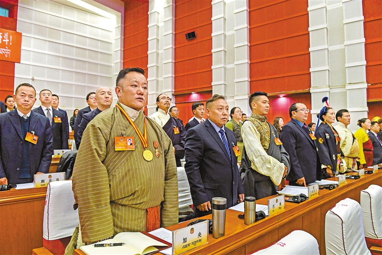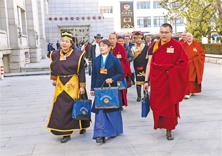委員們精神飽滿地步入會(huì)場(chǎng)。記者 丹增群培 攝