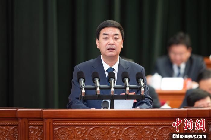 圖為西藏自治區(qū)主席嚴(yán)金海作政府工作報(bào)告。貢嘎來松 攝