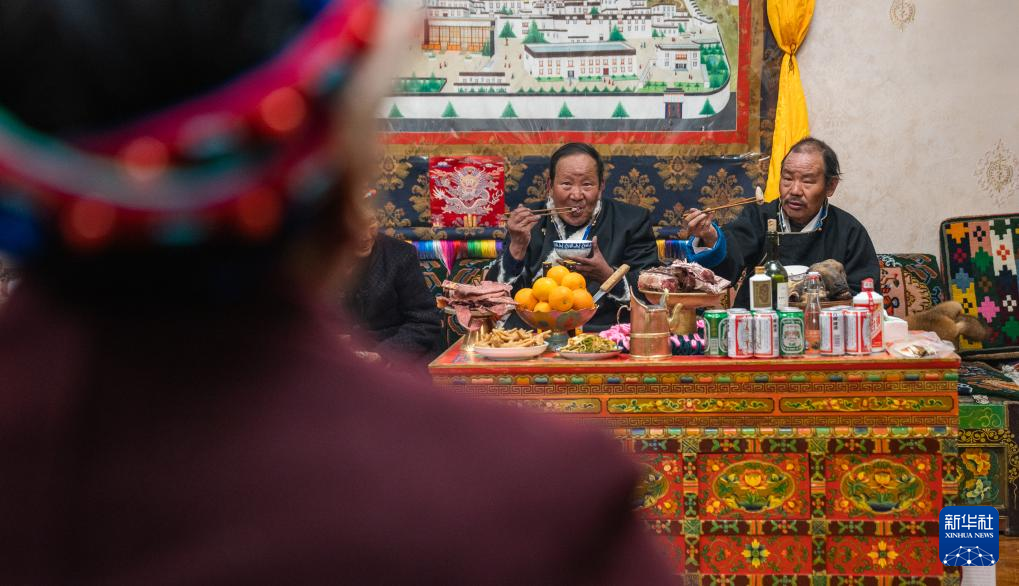 巴桑普尺一家人在吃“古突”(1月10日攝)。新華社發(fā)(丁增尼達 攝)