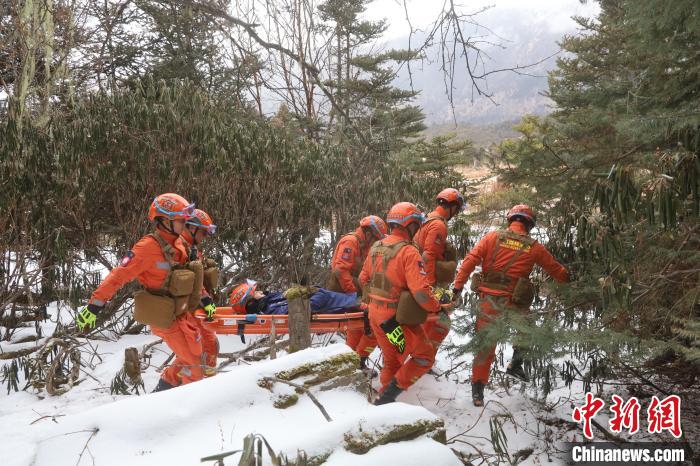 圖為森林消防隊(duì)員正在轉(zhuǎn)運(yùn)被困人員。袁永斌 攝