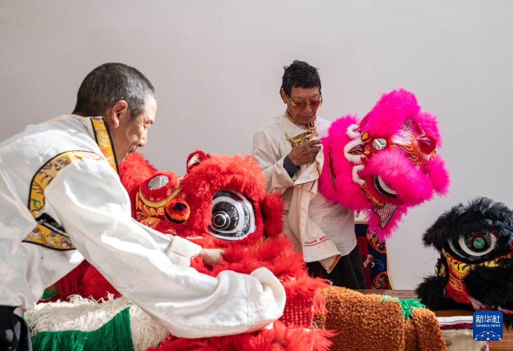 過(guò)去,鄧巴阿尼自己動(dòng)手,用布料和膠水做出獅頭,再給毯子縫上草繩編的毛發(fā)做成獅皮。“后來(lái)生活條件慢慢變好,政府也給了很多支持,我們不僅有錢購(gòu)買舞獅道具,還有機(jī)會(huì)去各地表演。”鄧巴阿尼說(shuō)。2022年,由獅子舞改編的節(jié)目《吉韻碩督》登上了西藏電視臺(tái)的藏歷新年聯(lián)歡晚會(huì)。2023年,鄧巴阿尼和村民們又將獅子舞搬上了中國(guó)西藏旅游文化國(guó)際博覽會(huì)昌都館的舞臺(tái)。