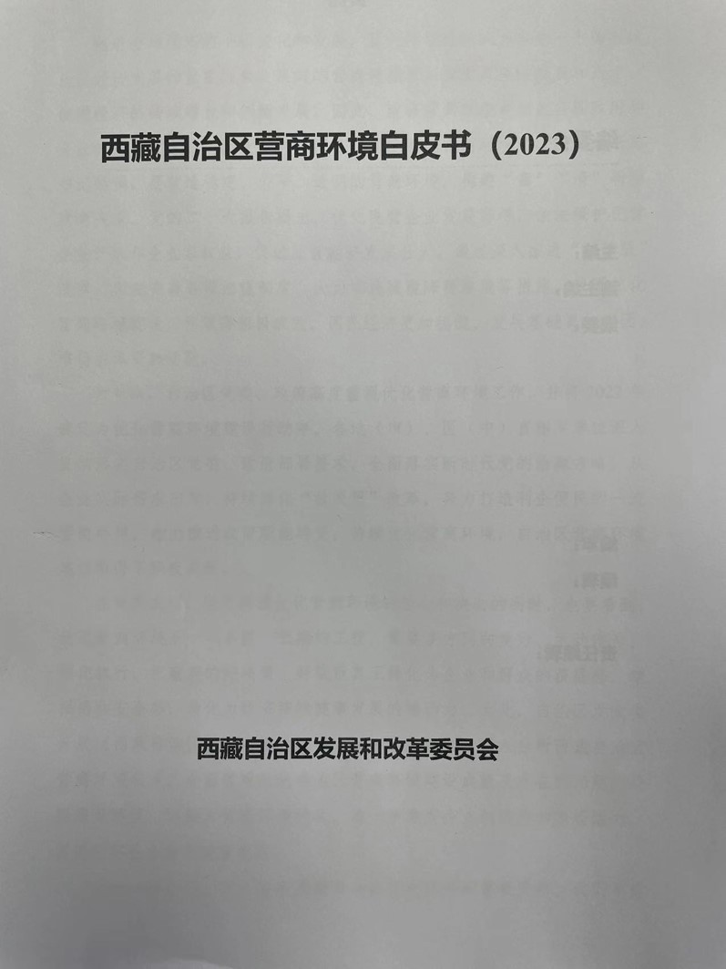 2024年1月23日,《西藏自治區(qū)營商環(huán)境白皮書(2023)》發(fā)布,這是西藏自治區(qū)首次發(fā)布營商環(huán)境白皮書。西藏聚焦“審批事項最少、審批時限最短、審批流程最優(yōu)、審批服務最好”目標,持續(xù)深化“放管服”改革,營商環(huán)境改革成效顯著。