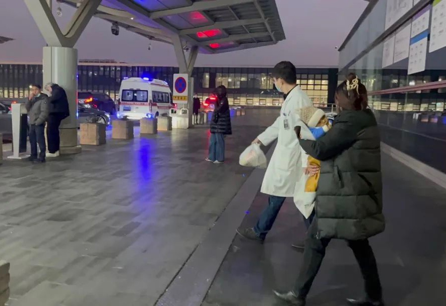 1月18日晚,浙大二院醫(yī)生接上德勒和他的媽媽,救護(hù)車也等候在機場外。新華社發(fā)(金宇婷攝)