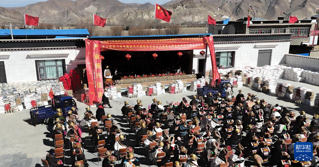 2月3日,日喀則市江孜縣紫金鄉(xiāng)努堆村在舉行分紅大會。新華社記者 洛卓嘉措 攝