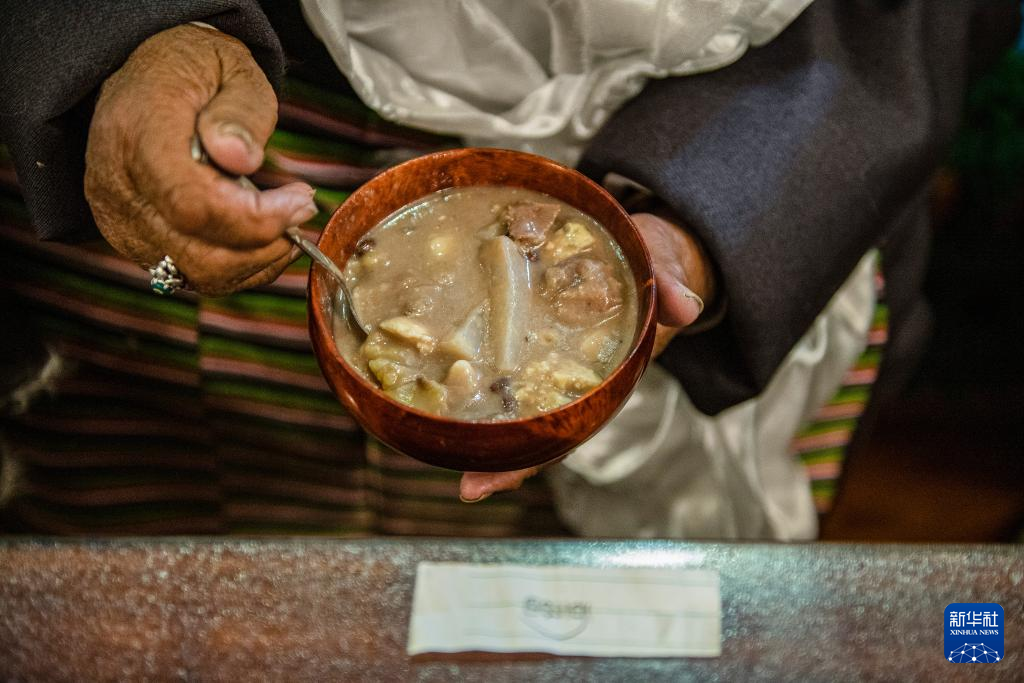在西藏拉薩市當(dāng)雄縣公塘鄉(xiāng)甲根村,整個(gè)村子沉浸在節(jié)日氣氛中。村里的斯曲旺姆老人家四世同堂,房屋寬敞明亮。手里捧著盛滿“古突”的木碗,斯曲旺姆老人希望這樣的幸福能長(zhǎng)長(zhǎng)久久。