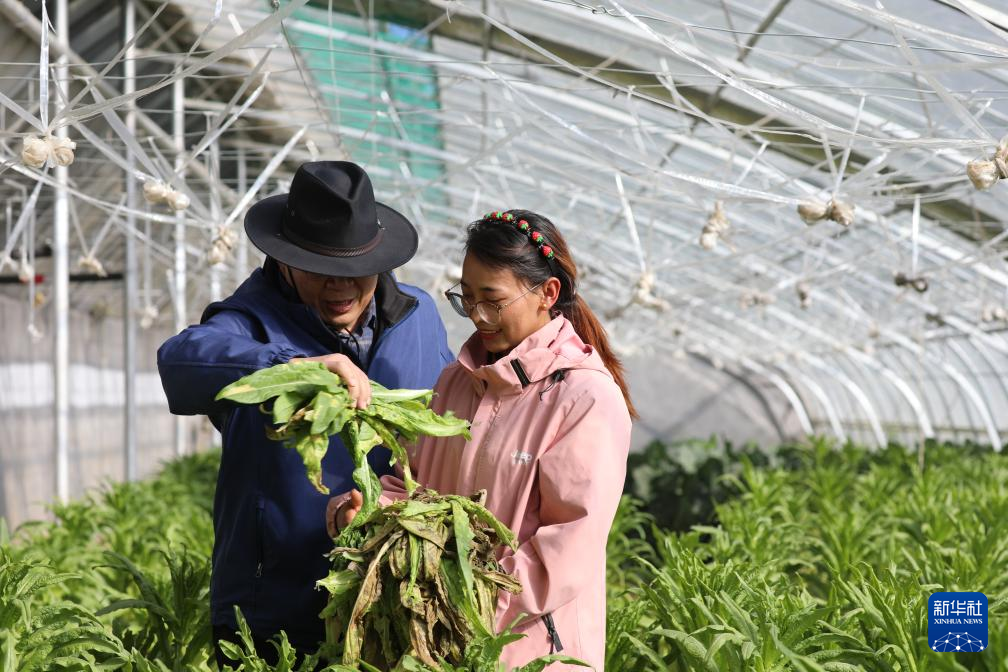 早上9點鐘,西藏日喀則市白朗縣巴扎鄉(xiāng)彭倉村村民次仁瓊達就來到自家蔬菜大棚,把采摘的辣椒運到農貿市場銷售?!岸焓卟藘r格高,尤其新年期間供不應求。”她說。