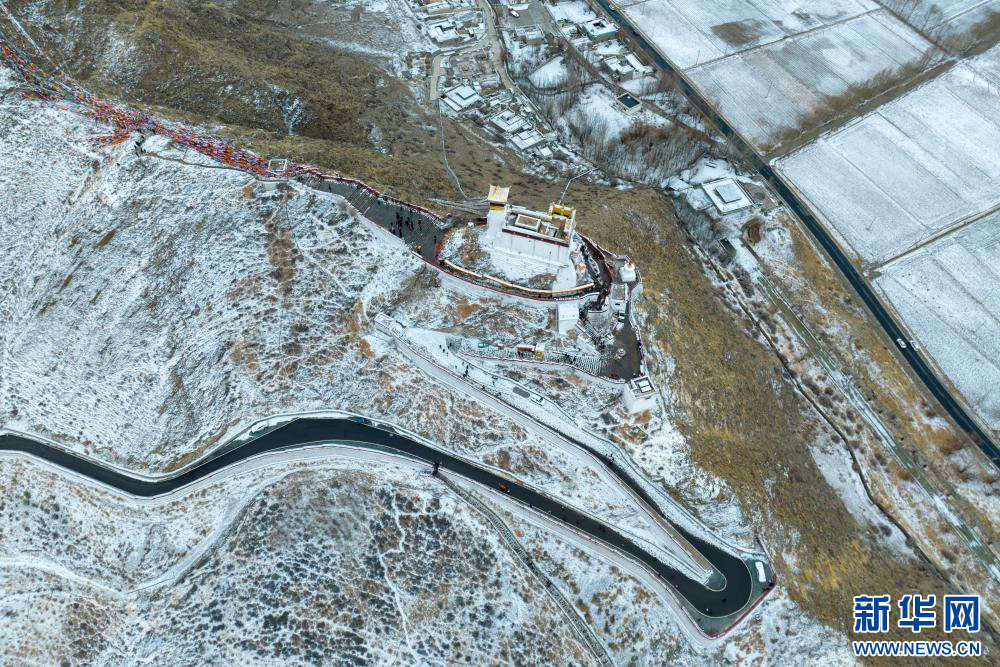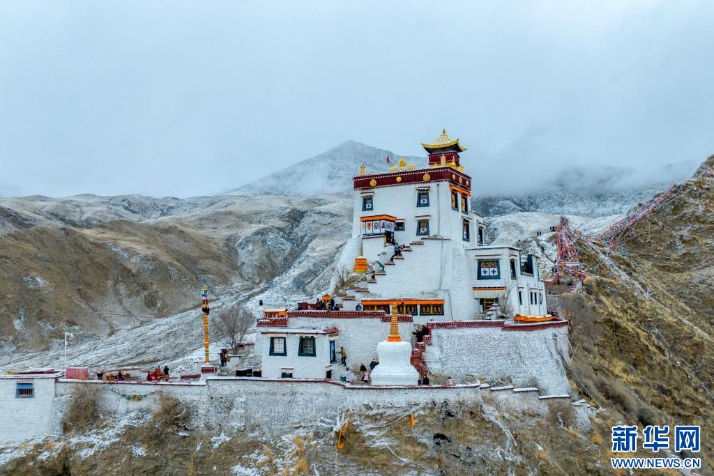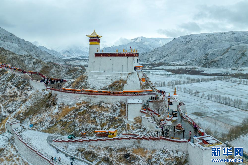 15日,西藏多地迎來降雪天氣,雪后的雍布拉康更顯莊嚴,不少游客前來游玩、拍照,欣賞冬日別樣景致。