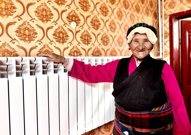 瓊拉老人摸著暖氣片笑容滿面。瓊達(dá)卓嘎攝