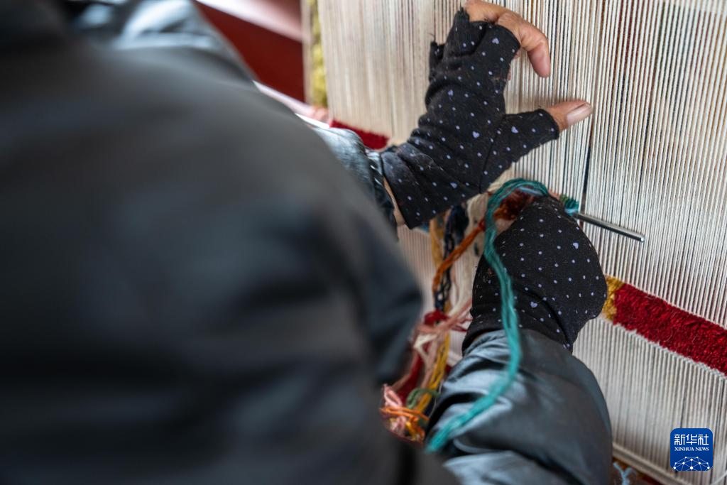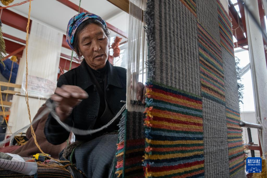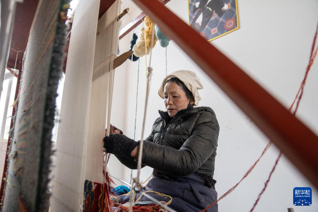 一名婦女在編織藏毯(2月22日攝)。新華社記者 旦增尼瑪曲珠 攝